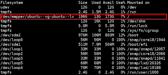 sudo resize2fs /dev/ubuntu-vg/ubuntu-lv
